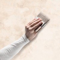 Нанесете втория слой с четка за декоративни ефекти, оформяйки крайния мотив. Нанасяйте боята на етапи, покривайки по 2-3 м² наведнъж. Оставете да изсъхне за около 4 часа. Нанасяйте при температура между +8°C и +25°C, с относителна влажност максимум 82%, като избягвате течение. След приключване измийте инструментите с топла вода.