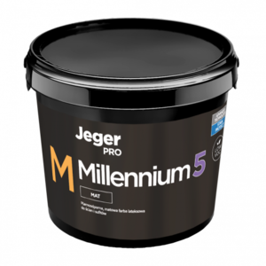 Jeger Millennium 5 Matt е устойчива на петна, матова латексова боя, базирана на иновативно решение, което осигурява устойчивост на петна, мазнини и замърсявания и предотвратява натрупването на прах. Характеризира се с най-висока устойчивост на триене. Продуктът съдържа специализирани добавки, които осигуряват висок ъгъл на омокряне – хидрофобен ефект „Лотос“. Боята не пръска по време на нанасяне. Покритието предотвратява видими петна и осигурява трайно покритие и цвят. Ниското съдържание на летливи органични съединения (ЛОС) прави този продукт екологичен и безопасен за човека.