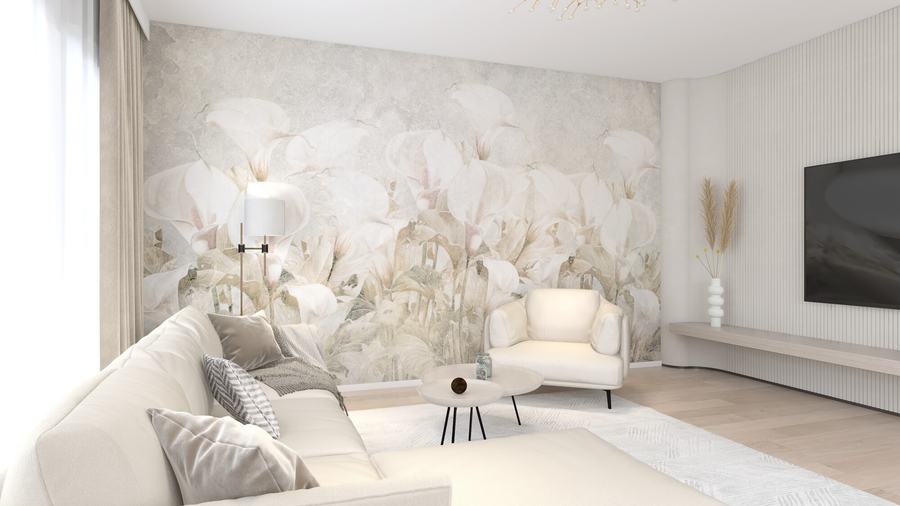 Тапетът Calia пленява с деликатния си мотив кала, изпълнен в пастелни, естествени тонове, излъчващи спокойствие и елегантност. Неговата фина форма и меки цветови преходи внасят хармония и усещане за свежест в интериора. Той е отличен избор за тези, които търсят да създадат пространство, изпълнено с класа и ботаническа красота.