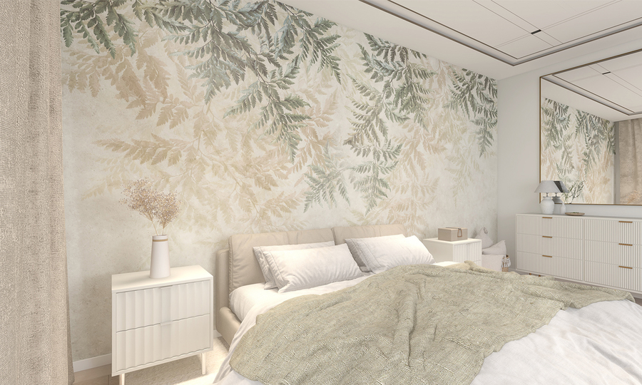 Тапет Fern ви кани в невероятния свят на природата. Тази фина композиция с листа от папрат създава завладяващ образ, изпълнен с магия и мистерия. В стая, декорирана с този тапет, ще намерите спокойствие и възможност да се възстановите след натоварен ден. Той се съчетава перфектно с естествен, скандинавски и минималистичен декор, създавайки хармонично пространство, изпълнено с атмосфера на близост с природата. Изглежда най-добре, когато се съчетава с естествени материали като дърво, ратан или лен.
