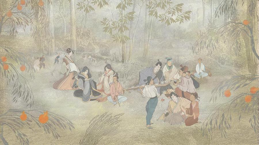 Висококачествен тапет с мотив на японския обичай ханами – изработен с помощта на екологична технология за печат на тапети