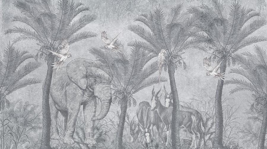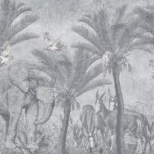 Висококачествен тапет с мотив джунгла в сиви цветове - изработен с помощта на екологична технология за печат на тапети