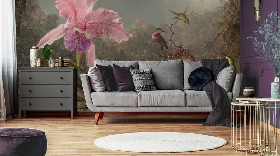 Висококачествен тапет с атмосфера на тропическа гора в живописна форма – изработен с помощта на екологична технология за печат на тапети