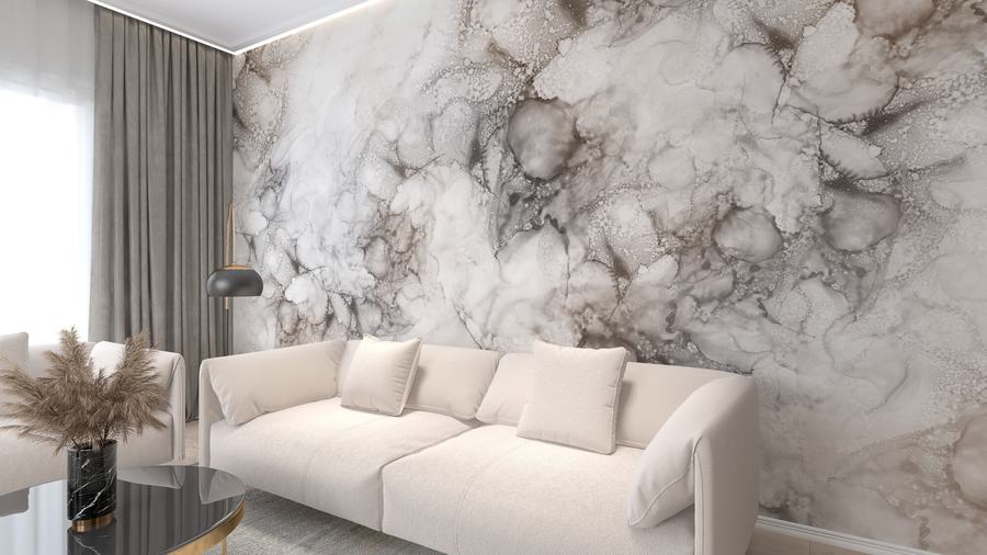 Тапетът Nimbus пленява с динамичния си модел, напомнящ абстрактни облаци и минерални структури, създавайки изключителна визуална дълбочина. По-тъмните акценти се преплитат с по-светли тонове, придавайки на пространството характер и модерен стил. Това е идеалният вариант за тези, които търсят впечатляваща декорация за стена, която привлича погледа и добавя уникална атмосфера към интериора им.