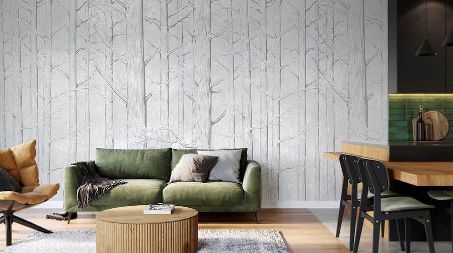 Класически, вечен модел на дървета в нюанси на сивото, вдъхновен от изкуството на скицирането. Приглушените цветове и деликатните силуети на дърветата гарантират, че този тапет няма да бъде доминиращ акцент в интериора, а ще подобри красиво декора му. Спокойният дизайн на тапета Trees ще подчертае перфектно мебели в смели цветове, като например тези, тапицирани с кадифен плюш.