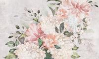 Тапет по поръчка с големи пастелни цветя и светъл бетон – изработен с помощта на екологична технология за печат на тапети