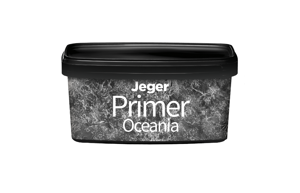 Jeger Primer Oceania základní nátěr pod efekt Jeger Oceania. Jeho speciální složení vyrovnává savost podkladu, zpevňuje a zvyšuje přilnavost dekorativního efektu a umožňuje dosažení správného barevného odstínu.