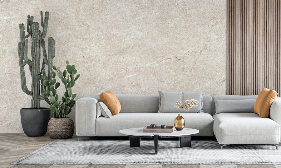 Zakázková pískovcová tapeta, teplý odstín béžové – vyrobeno ekologickou technologií tisku tapet