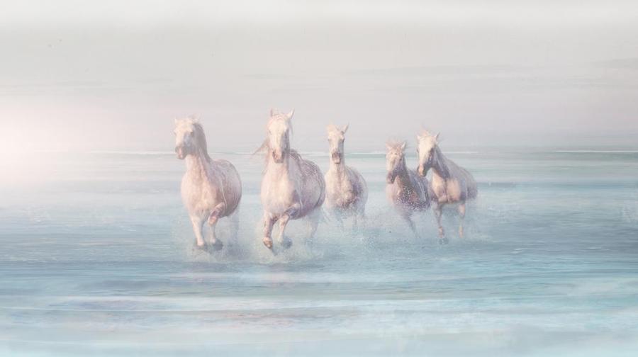 Bílí koně ve cvalu je tématem tapety Artemida, která se hodí pro lidi plné života a energie. Artemida je skvělým doplňkem interiérů navržených s ohledem na aktivní uživatele. Světlé, jemné pozadí prosvětluje a rozjasňuje interiér a dodává mu jedinečný charakter. Artemida se krásně prolíná s industriálními a minimalistickými stylovými aranžmá.