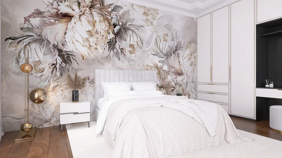 Tapeta Aster je fenomenální kompozice velkých, plných květů v jemných odstínech krémové, šedé a pudrově růžové, které jako by se vznášely v éterické mlze. Jeho umělecký charakter a jemné barvy vnášejí do interiéru romantiku, eleganci a nádech luxusu. Ideální do ložnice, obývacího pokoje nebo šatny – dodá vašemu prostoru jedinečné kouzlo.
