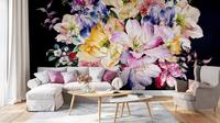 Kvalitní tapeta s motivem výrazné kytice na tmavém pozadí – vyrobená ekologickou technologií tisku tapet