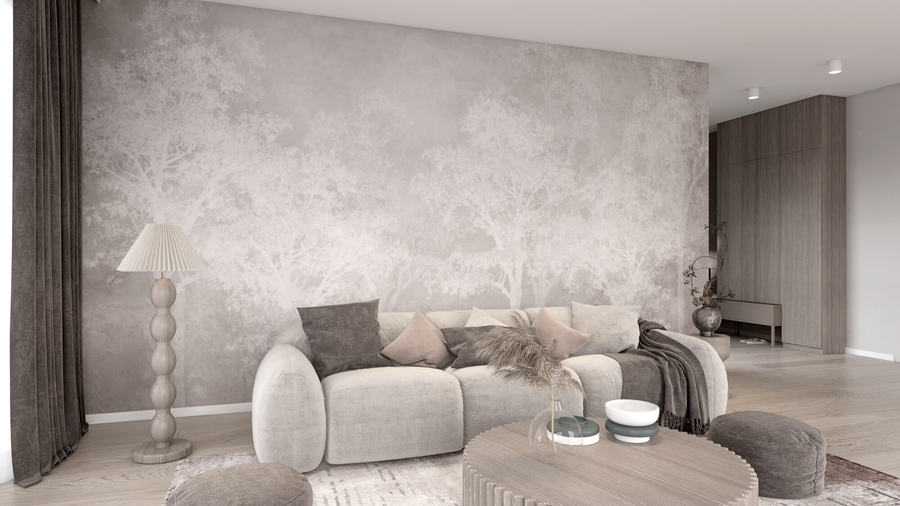 Tapeta Cove je elegantní pozadí v odstínech kávově béžové s jemným motivem koruny stromu, který vytváří efekt hloubky a přirozené harmonie. Dokonale se hodí k moderním, tlumeným interiérům a dodává jim útulnost a stylovou sofistikovanost. Je to vynikající volba pro lidi, kteří oceňují minimalismus s uměleckým nádechem inspirovaným přírodou.