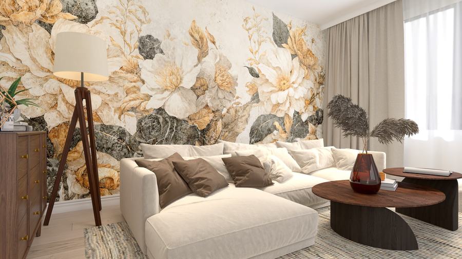 Tapeta Flora je výrazná kompozice inspirovaná klasickými botanickými ilustracemi, kterým dominují zlaté a krémové barvy. Její elegantní, ručně malovaný styl vnáší do interiéru noblesní atmosféru a nadčasovou krásu přírody. Je to vynikající volba pro lidi, kteří chtějí vytvořit prostor s charakterem, plný vřelosti a uměleckého vyjádření.