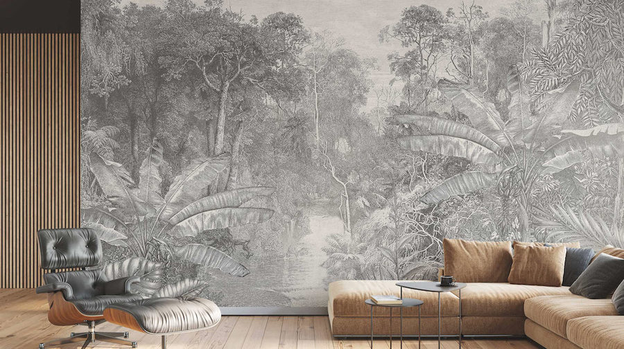 Cítíte se dobře v interiérech městské džungle, ale dáváte přednost tlumeným barvám před hodováním barev? Vyberte si tapetu se vzorem Jungle navrženým v odstínech šedé. Motiv bujné, exotické vegetace s nádhernými listy se bude skvěle vyjímat v moderních interiérech. Vzor získává malířský charakter v kombinaci s materiálem s jasnou strukturou plátna, která zdůrazňuje jeho texturu.