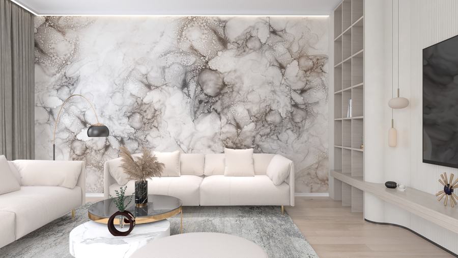 Tapeta Nimbus zaujme dynamickým vzorem připomínajícím abstraktní mraky a minerální struktury, který vytváří mimořádnou vizuální hloubku. Tmavší akcenty se střídají se světlými tóny, což dodává prostoru charakter a moderní styl. Je to ideální nabídka pro ty, kteří hledají výraznou nástěnnou dekoraci, která přitáhne pozornost a dodá interiéru jedinečnou atmosféru.