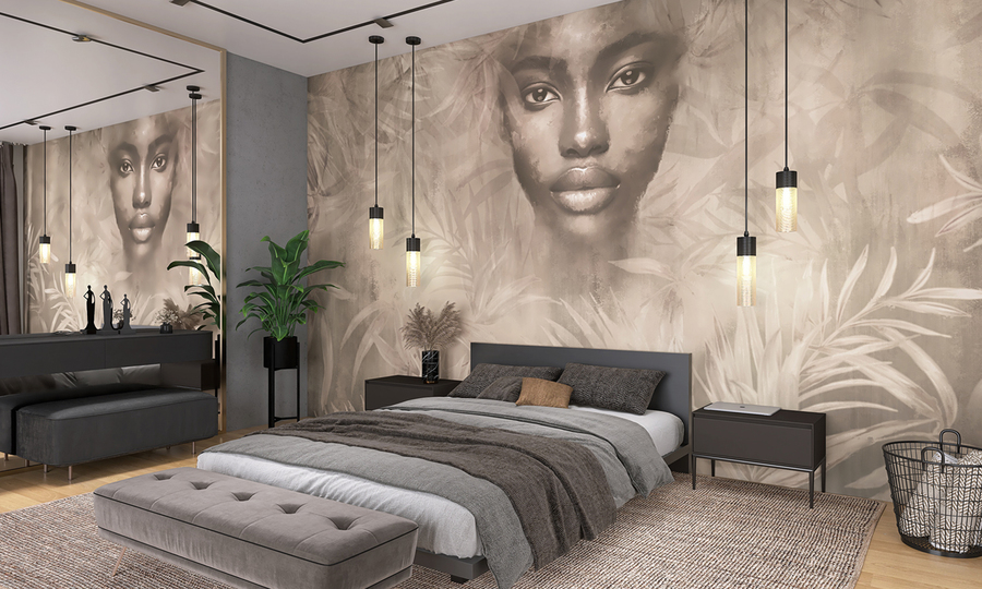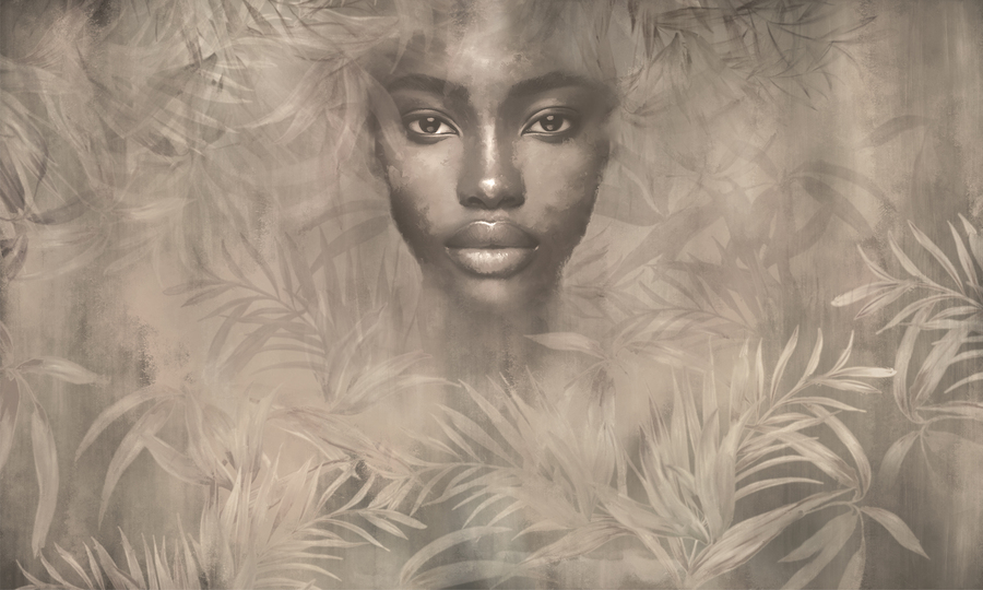 Tapeta Shadow v tmavých tónech je jako cesta mlžnou džunglí. Ve své neobyčejné temnotě se skrývá tajemná síla přírody. Expresivní obraz tváře africké ženy, zahalený do květinového motivu, vyzařuje sílu a klid. Shadow je nabídka pro všechny, kteří hledají originální, výrazné motivy a chtějí do svého domova vnést exotický nádech. V obývacím pokoji to může být okno do jiného světa, díky kterému se budete cítit jako cestovatel v exotické zemi. V ložnici vás zahalí do svého tajemného kouzla, zajistí klidný spánek a inspiruje vás ke snění těch nejkrásnějších snů. Tento moderní design tapety podtrhne osobní nádech vašeho interiéru.