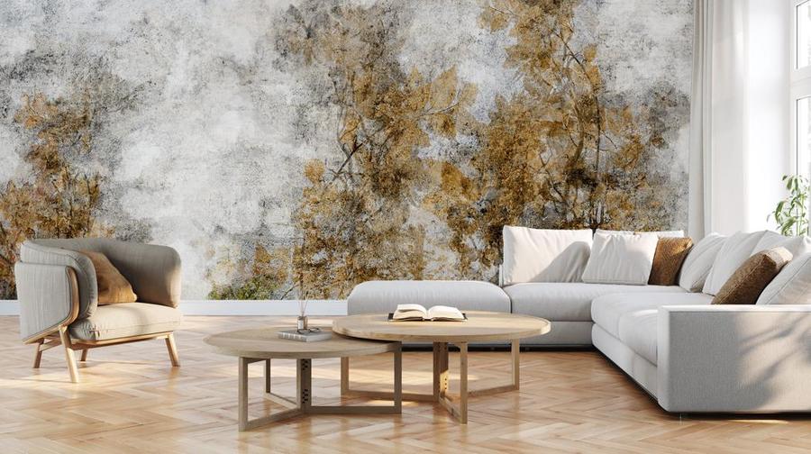 Kvalitní tapeta s motivem jemných větviček v podzimní barevné paletě – vyrobená ekologickou technologií tisku tapet