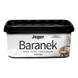 Jeger Baranek ist eine weiße, matte, strukturierte Acrylfarbe mit mineralischen Zusätzen, die der dekorierten Oberfläche eine charakteristische „Lammfellstruktur” verleiht. Die Farbe bietet eine sehr gute Deckkraft und ermöglicht das Kaschieren kleiner Unebenheiten und Risse. Das Produkt ist für die Verwendung auf Innenwänden bestimmt.