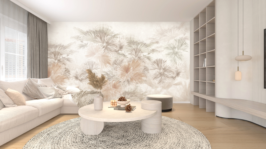 Tauchen Sie ein in eine Atmosphäre voller exotischem Charme, indem Sie ein tropisches Pflanzenmotiv mit einem Hauch von Vintage in Ihr Interieur bringen. Das Muster aus großen, subtropischen Pflanzen versetzt Sie in einen Zustand der Entspannung und Ruhe, während es dem Raum Gemütlichkeit und Wärme verleiht. Charm passt zu einer Vielzahl von Innenräumen, von organischem, biophilem Design, Boho bis hin zu modern und minimalistisch. Unabhängig von Ihrem Einrichtungsstil wird die exotische Flora der Tapete eine einzigartige Atmosphäre schaffen, die Sie in eine angenehme Aura der Natur einhüllt.