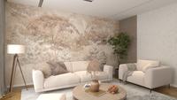 Die Tapete Pine zeigt einen malerischen Kiefernwald in sanften, natürlichen Farben von gedämpftem Grün, Beige und Braun und schafft eine Atmosphäre der Ruhe und Entspannung. Das zarte Spiel von Licht und Schatten verleiht dem Muster Tiefe, die den Raum subtil öffnet. Es ist die ideale Wahl für naturinspirierte Innenräume – sowohl moderne als auch klassische.