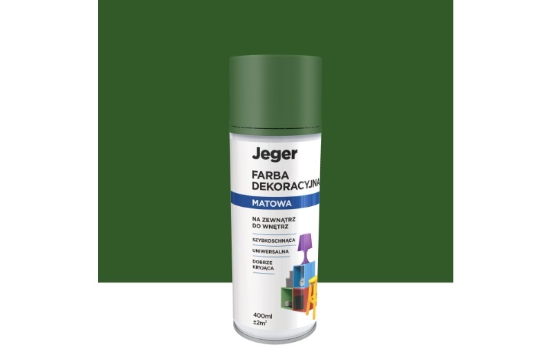 Dekorative Sprühfarbe, matt, grün, für verschiedene Oberflächen im Innen- und Außenbereich.