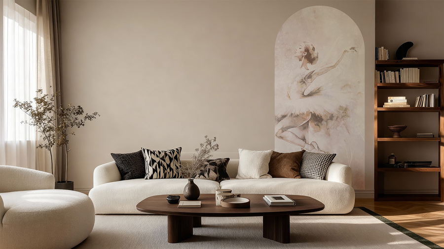 Hochwertige Tapete mit einem Bogenmotiv einer tanzenden Ballerina – hergestellt mit umweltfreundlicher Tapetendrucktechnologie