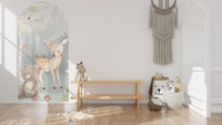 Hochwertige, maßgeschneiderte Bogentapete mit Bambi- und Waldmotiv – hergestellt mit umweltfreundlicher Tapetendrucktechnologie