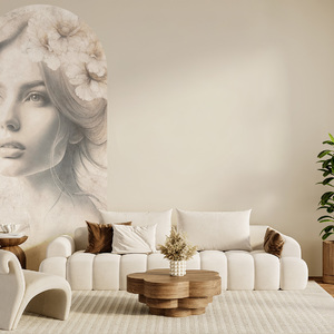 Hochwertige Bogentapete mit Blumenmotiv und zarter Zeichnung eines weiblichen Gesichts – hergestellt mit umweltfreundlicher Tapetendrucktechnologie