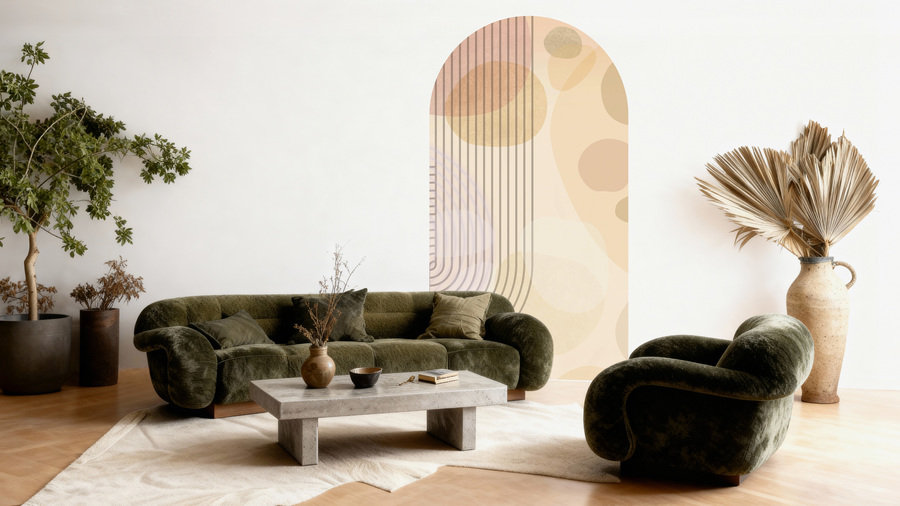 Aufwendige Bogentapete mit geometrischem Muster im Retro-Stil – hergestellt mit umweltfreundlicher Tapetendrucktechnologie