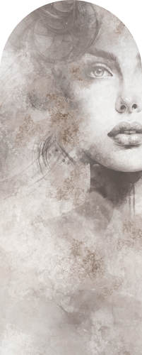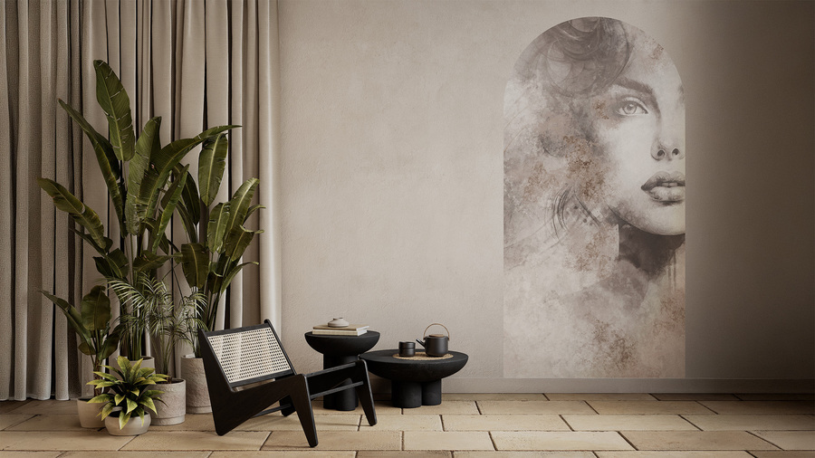 Hochwertige Tapete mit Bogenmotiv und einem weiblichen Gesicht – hergestellt mit umweltfreundlicher Tapetendrucktechnologie