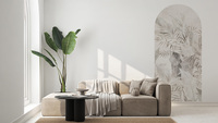 Hochwertige Bogentapete mit exotischem Pflanzenmotiv im Urban-Jungle-Stil – hergestellt mit umweltfreundlicher Tapetendrucktechnologie