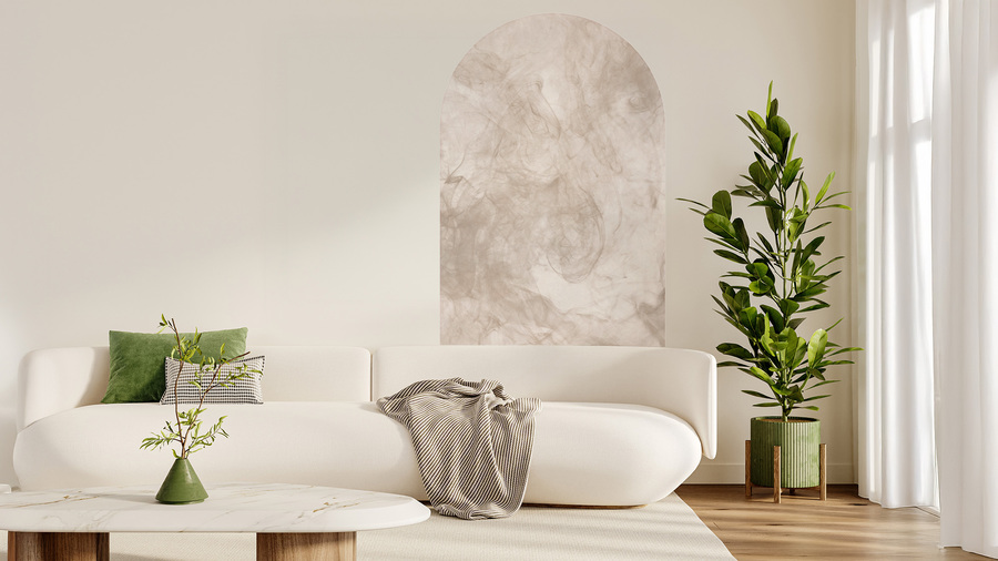 Hochwertige Bogentapete mit dezentem Muster und nebliger Textur – hergestellt mit umweltfreundlicher Tapetendrucktechnologie