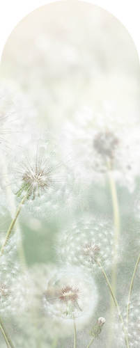 Hochwertige Bogentapete mit pflanzlichem Motiv aus Pusteblumen – hergestellt mit umweltfreundlicher Tapetendrucktechnologie
