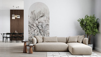 Hochwertige Bogentapete mit dezentem tropischem Blattmotiv – hergestellt mit umweltfreundlicher Tapetendrucktechnologie