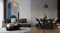 Tapete Tiles der graue Hintergrund mit dezenter Reibung harmoniert gut mit den ausdrucksstarken geometrischen Formen in kräftigen Farben. Diese dekorative Kombination fällt auf den ersten Blick ins Auge und bringt einen modernisierten Retro-Stil in die Einrichtung. Tapete Tiles ist ideal für eine Wand im Wohn- oder Schlafzimmer.