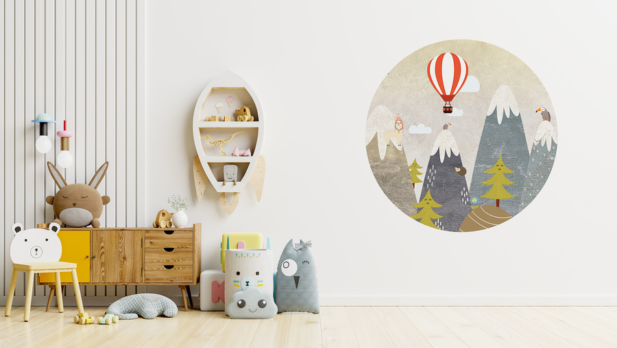 Hochwertige Tapete Kreis nach Maß mit einem lustigen Ballonmotiv – hergestellt mit umweltfreundlicher Tapetendrucktechnologie