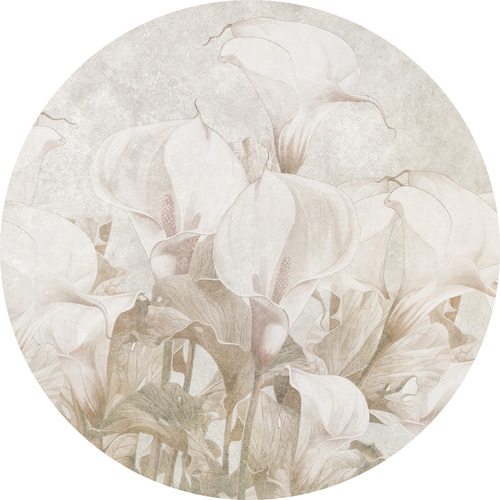 Hochwertige Tapete Kreis mit pastellfarbenem Kalia-Blumenmuster – hergestellt mit umweltfreundlicher Tapetendrucktechnologie