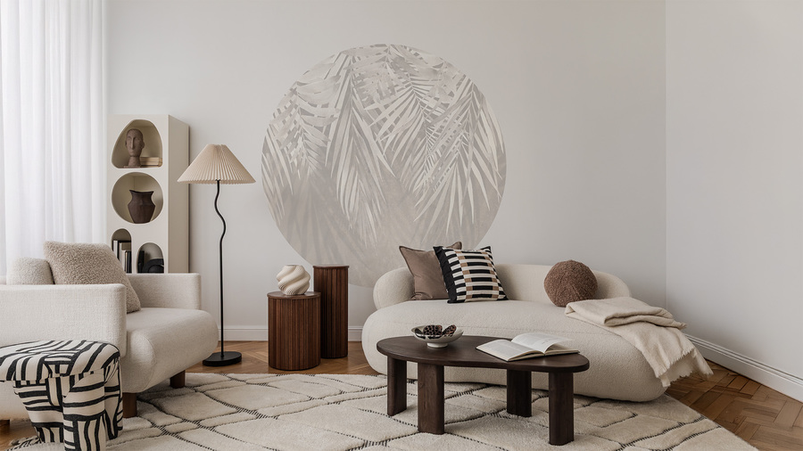 Hochwertige Tapete Kreis mit silbernem Palmblattmotiv – hergestellt mit umweltfreundlicher Tapetendrucktechnologie