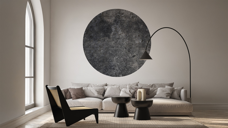 Hochwertige Tapete Kreis in einem dunklen Betonton – hergestellt mit umweltfreundlicher Tapetendrucktechnologie
