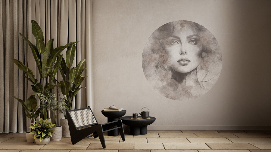 Hochwertige Tapete Kreis mit einem Motiv eines weiblichen Gesichts – hergestellt mit umweltfreundlicher Tapetendrucktechnologie