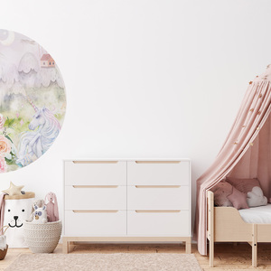 Hochwertige Tapete Kreis mit einem Maß, verziert mit einem Motiv aus dem Land der Einhörner – hergestellt mit umweltfreundlicher Tapetendrucktechnologie
