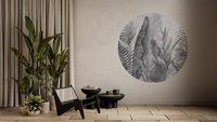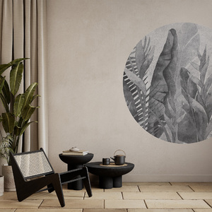 Hochwertige Tapete Kreis in Grau mit Blattmotiv – hergestellt mit umweltfreundlicher Tapetendrucktechnologie