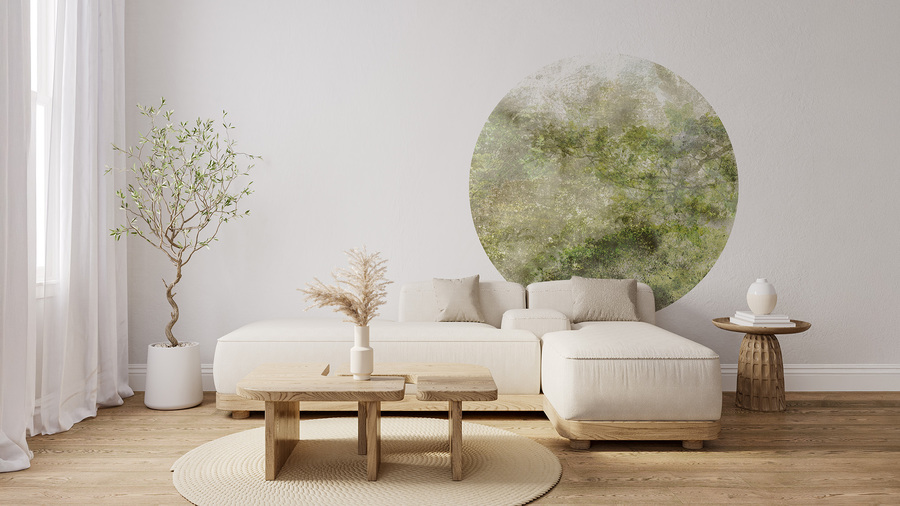 Hochwertige Tapete Kreis mit einem Motiv aus grünen Baumkronen – hergestellt mit umweltfreundlicher Tapetendrucktechnologie