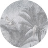 Hochwertige Tapete Kreis mit Dschungelmotiv in grauen Farbtönen – hergestellt mit umweltfreundlicher Tapetendrucktechnologie