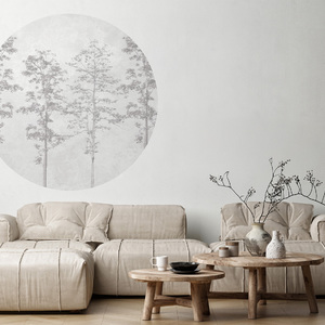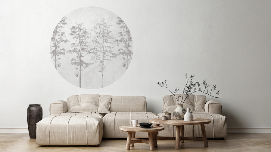 Hochwertige Tapete Kreis mit monochromem Muster eines morgendlichen Waldes – hergestellt mit umweltfreundlicher Tapetendrucktechnologie