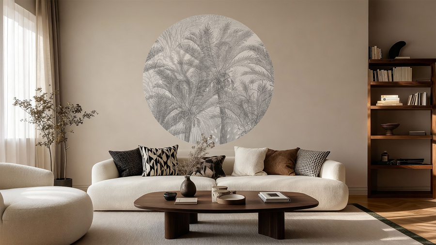 Hochwertige Tapete Kreis mit Palmenmotiv – hergestellt mit umweltfreundlicher Tapetendrucktechnologie