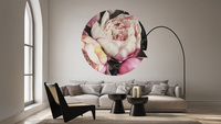 Hochwertige Tapete Kreis mit XXL-Blumenmotiv auf dunklem Hintergrund – hergestellt mit umweltfreundlicher Tapetendrucktechnologie