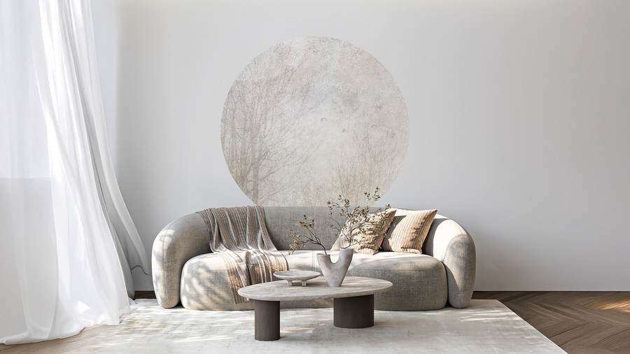 Hochwertige Tapete Kreis mit einem herbstlichen Landschaftsmotiv im malerischen Stil – hergestellt mit umweltfreundlicher Tapetendrucktechnologie