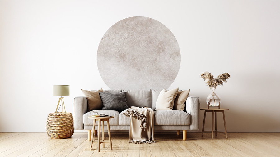 Hochwertige Tapete Kreis mit einem Muster aus gewischtem Beton – hergestellt mit einer umweltfreundlichen Tapetendrucktechnologie