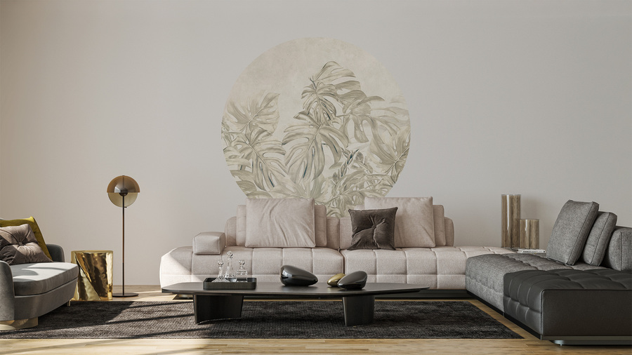 Hochwertige Tapete Kreis mit exotischem Monstera-Blattmuster – hergestellt mit umweltfreundlicher Tapetendrucktechnologie